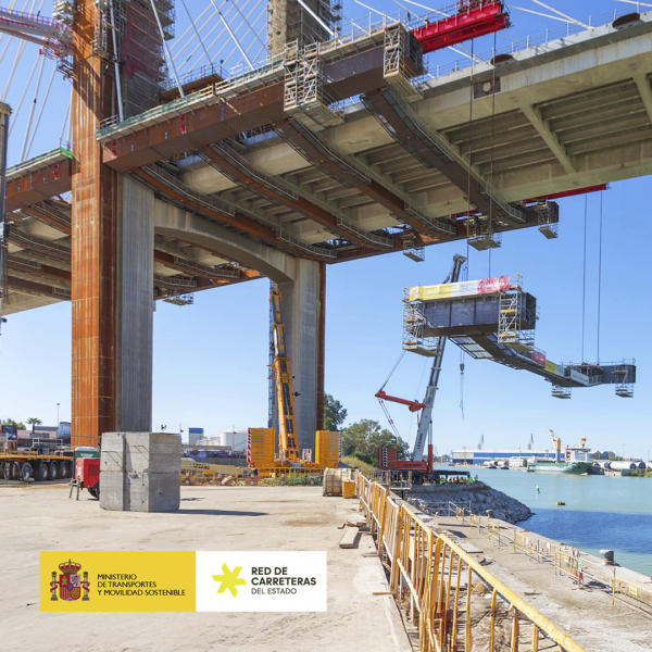 Las obras de sustitución de los tirantes del Puente del Centenario en Sevilla, que la UTE Acciona-Freyssinet-Tecade ejecuta para el Ministerio de Tran...